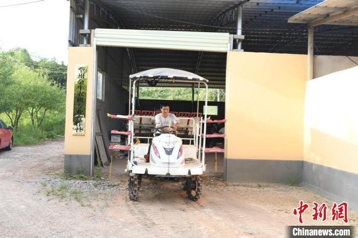 图为蒋德明的儿子驾驶农机前往作业现场。林浩 摄
