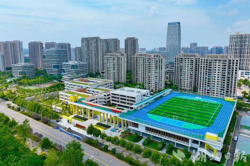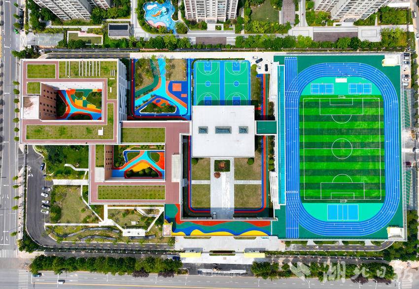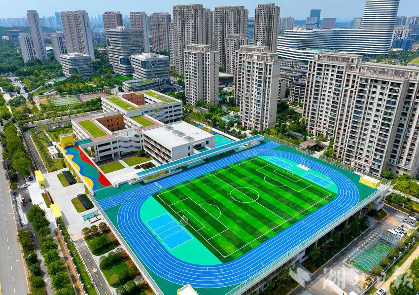 8月27日,俯瞰即将正式投用的华中师范大学武汉新城实验小学。该校地处武汉新城光谷片区的经济文化核心区,由华师一附中派出管理团队开办,学校占地49.5亩,建筑面积44515平方米,总投资2.3亿,办学规模为36个班。2024年,武汉东湖高新区有武汉市光谷实验小学花山河校区、华中师范大学武汉新城实验小学、武汉市光谷实验中学南湖校区、华中师范大学武汉新城实验中学,共4所新投用学校。东湖高新区高度重视基础教育建设。近三年,新改扩建中小学10余所、新增学位超1万个。坚持“新校即名校”战略,打造名校组团;坚持引育并重,持续拓展优质教育资源,基础教育办学水平挺进全市第一方阵。