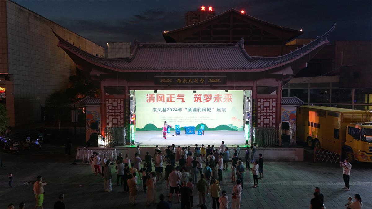 8月26日,夜幕初降,在湖北省来凤县喳西泰广场的南剧大舞台上,来凤县南剧艺术团的青年学员们正在表演新排练的戏曲舞蹈,不时赢得台下观众阵阵喝彩。
