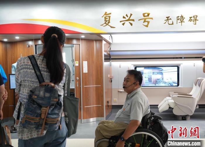 28日,国家无障碍环境展示馆在北京亮相。图为讲解员向观众讲解各种场景下的无障碍设施。中新社记者 郝凌宇 摄