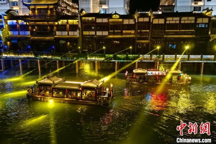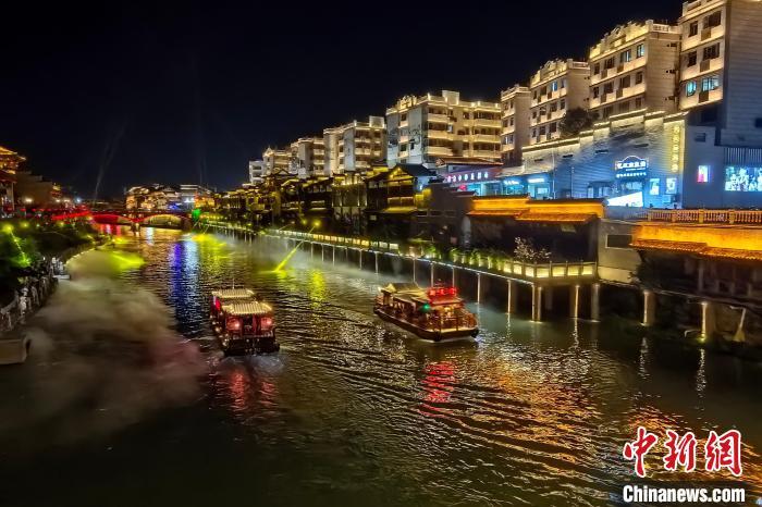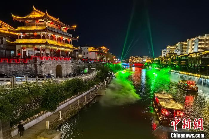 8月28日晚,位于福建省龙岩市长汀县的汀州古城迷人夜色吸引不少游客前来观赏。图为迷人的汀江夜景。中新社记者 张金川 摄
