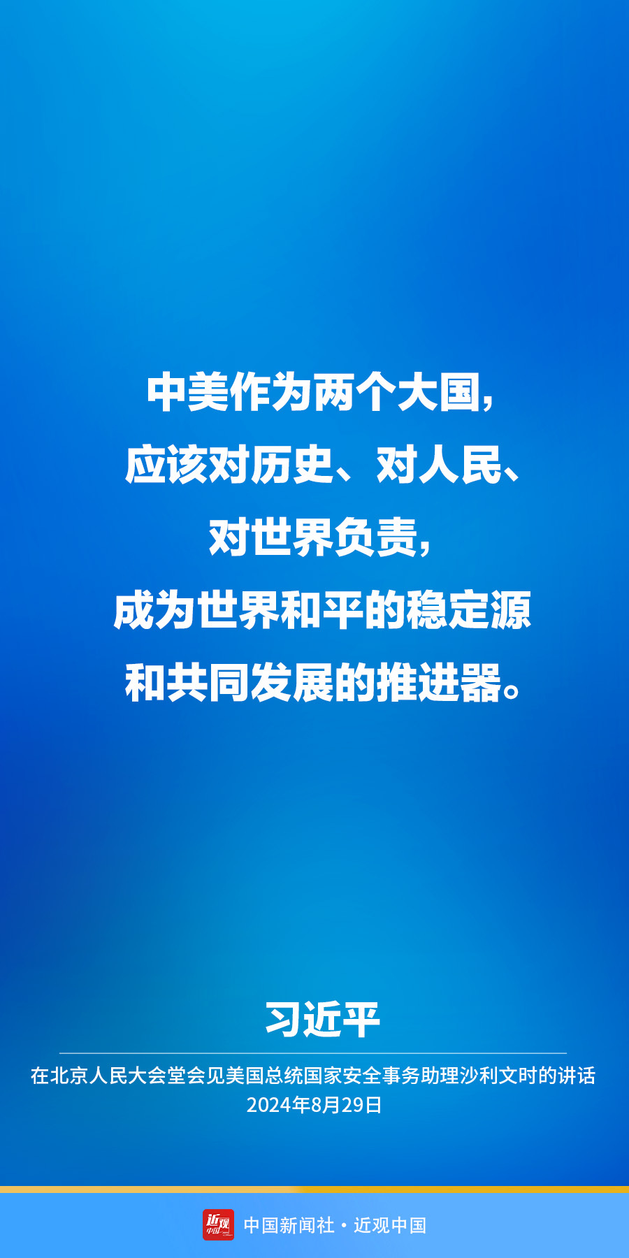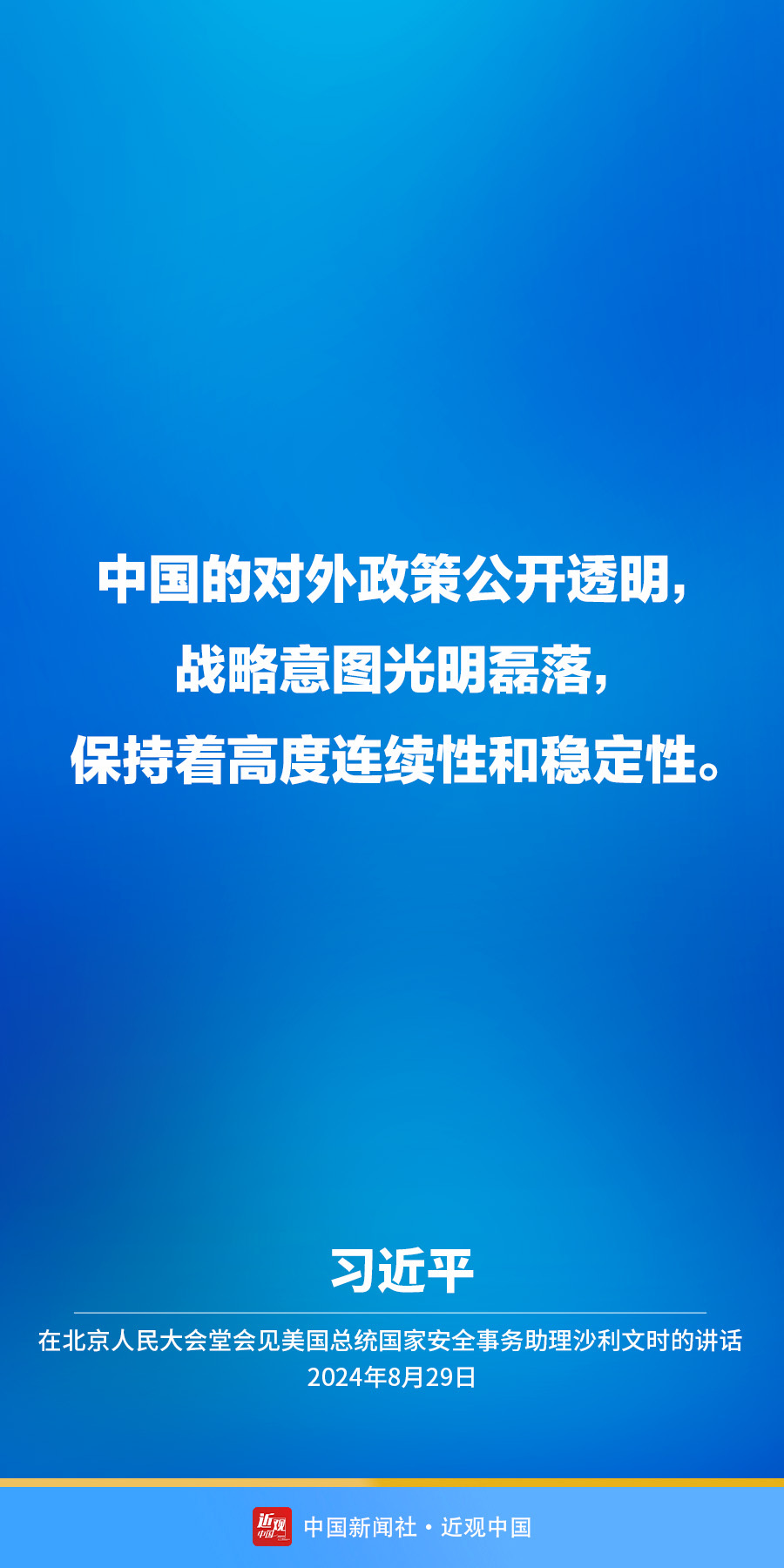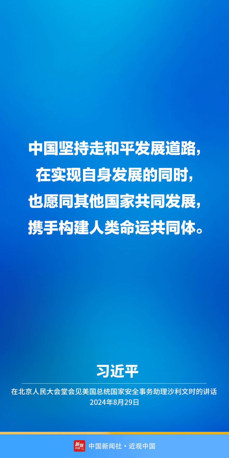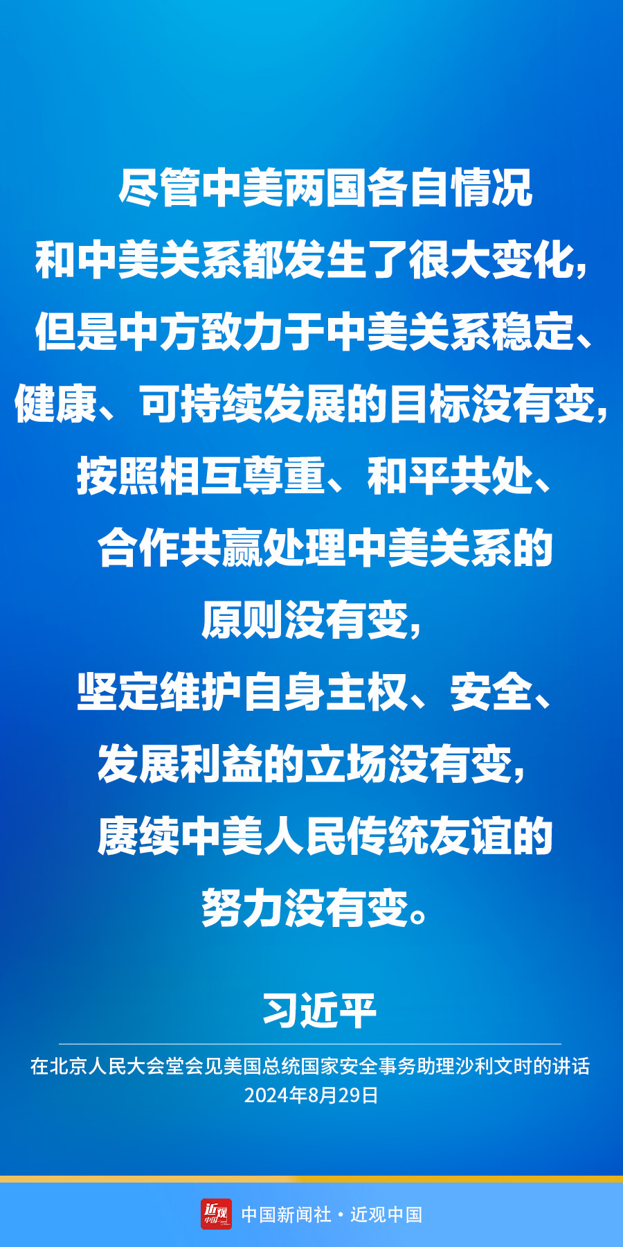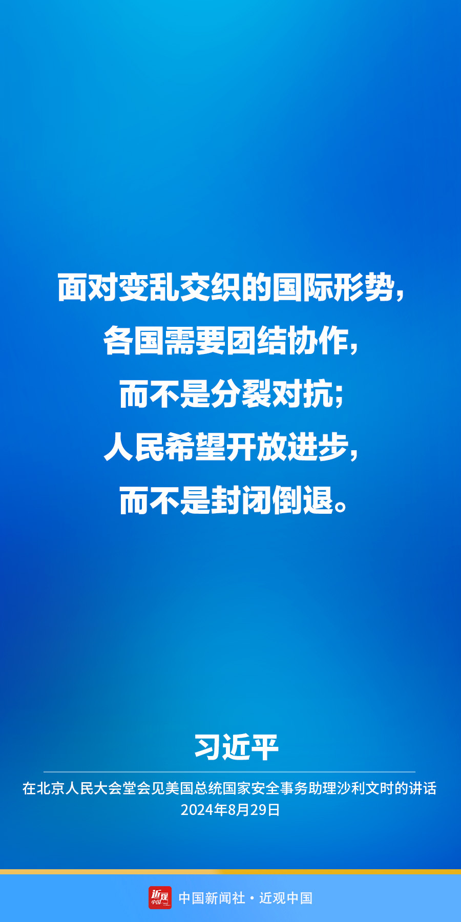 8月29日下午,国家主席习近平在北京人民大会堂会见美国总统国家安全事务助理沙利文。习近平指出——