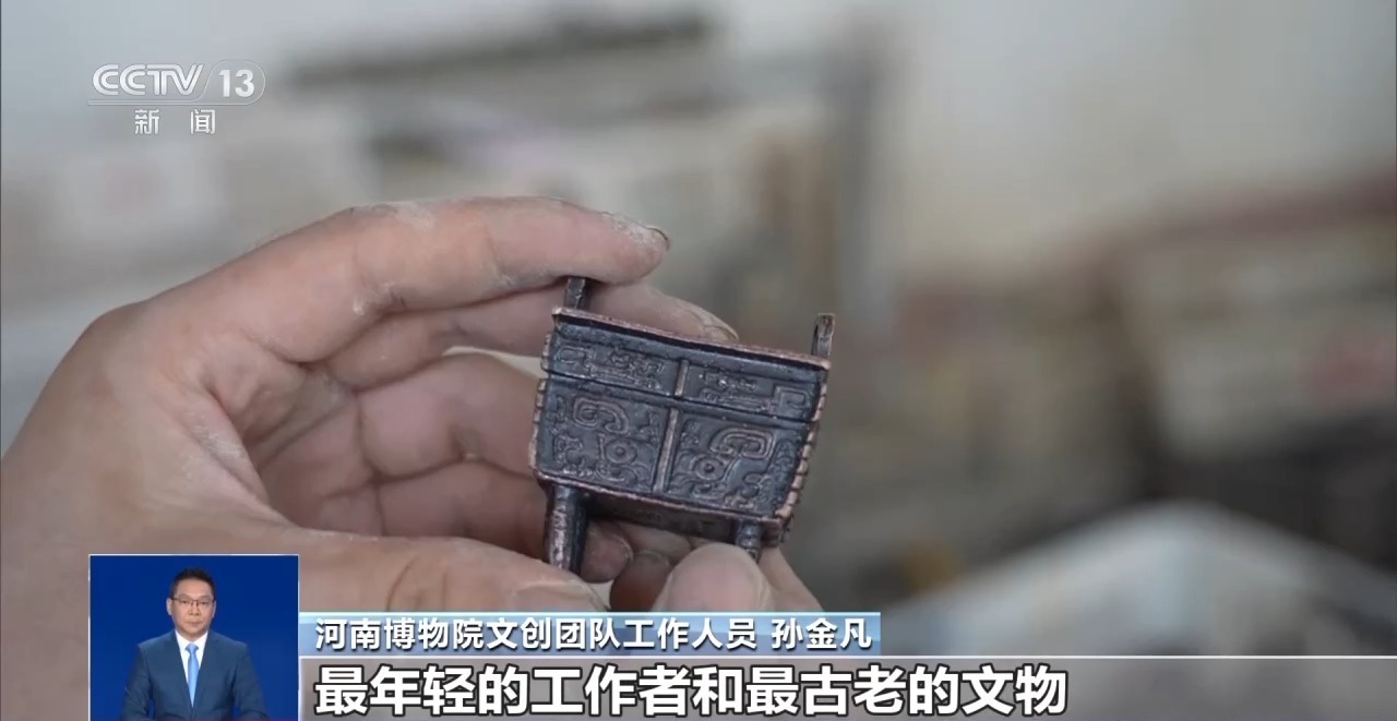 河南博物院文创团队工作人员 孙金凡:做成的时候感觉很有成就感,最年轻的工作者和最古老的文物,我觉得我这对CP组得还真的挺不错的。