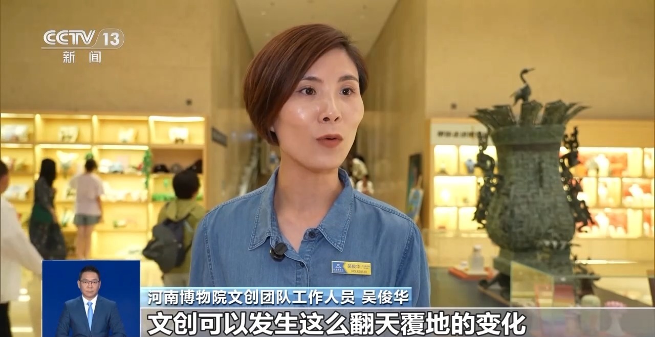 河南博物院文创团队工作人员 吴俊华:文化是文创的灵魂,创意是文创的生命,把这些文创产品都带回家的话,等于说把一座小型的博物馆带回去了,其实这就是让文物“活”起来。