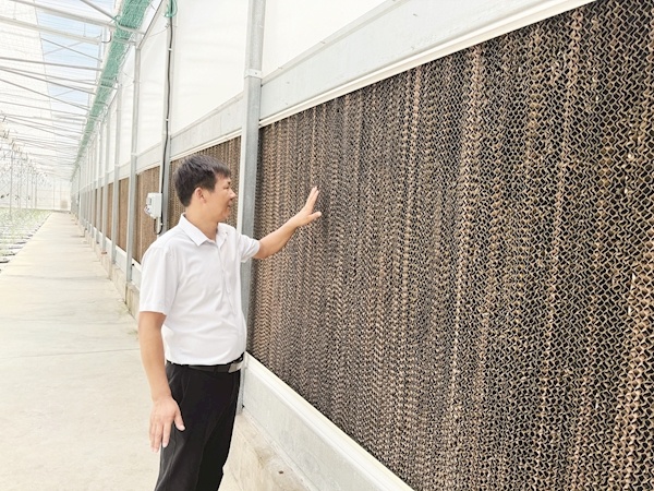 此外,大棚一侧还有一个水帘,对面则是循环风机。当大棚里温度过高时,风机自动开启,从水帘里循环出来的空气,可以让大棚迅速降温。“里面的循环风机每20分钟就会启动一次,让里面空气对流一下。”