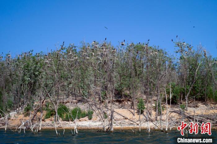 5月20日,北京密云水库鸟岛,众多鸬鹚在树上筑巢哺育幼鸟。 记者 盛佳鹏 摄