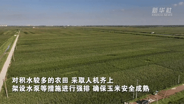 对积水较多的农田,采取人机齐上、架设水泵等措施进行强排,确保玉米安全成熟。