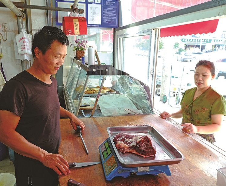 8月27日,市民在西安朱雀农副产品物流中心东区购买牛肉。 照片均由记者 田若楠摄