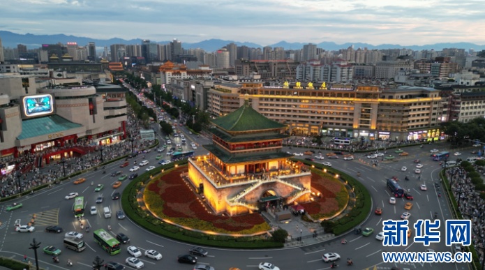 7月17日,傍晚时的西安钟楼(无人机照片)。新华社记者 林胜概 摄