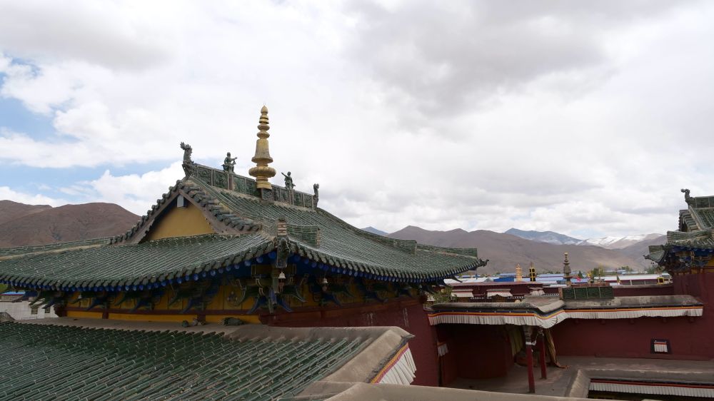 这是夏鲁寺重檐歇山式屋顶,呈现典型的汉藏融合风格(2024年5月8日摄)。新华社记者 邱星翔 摄