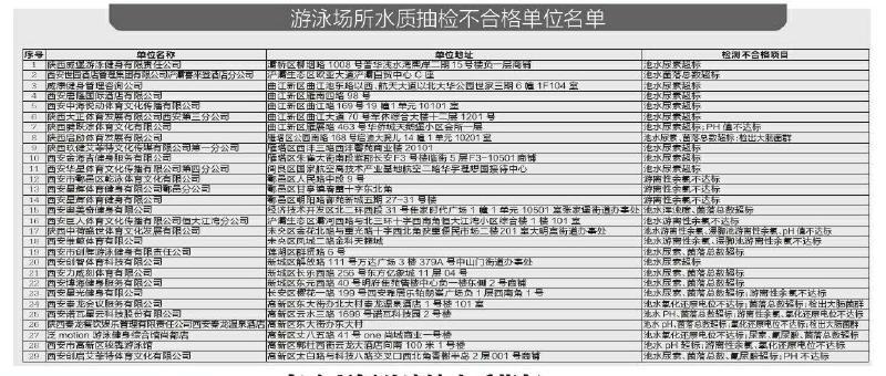 近日,西安市卫生健康委员会发布《2024年西安市游泳场所水质卫生第二批监督抽检结果公示》,此次共完成102家游泳场所的现场监督和水质抽检工作,从检测结果看,73家游泳场所检测项目均合格,29家存在不合格项目。