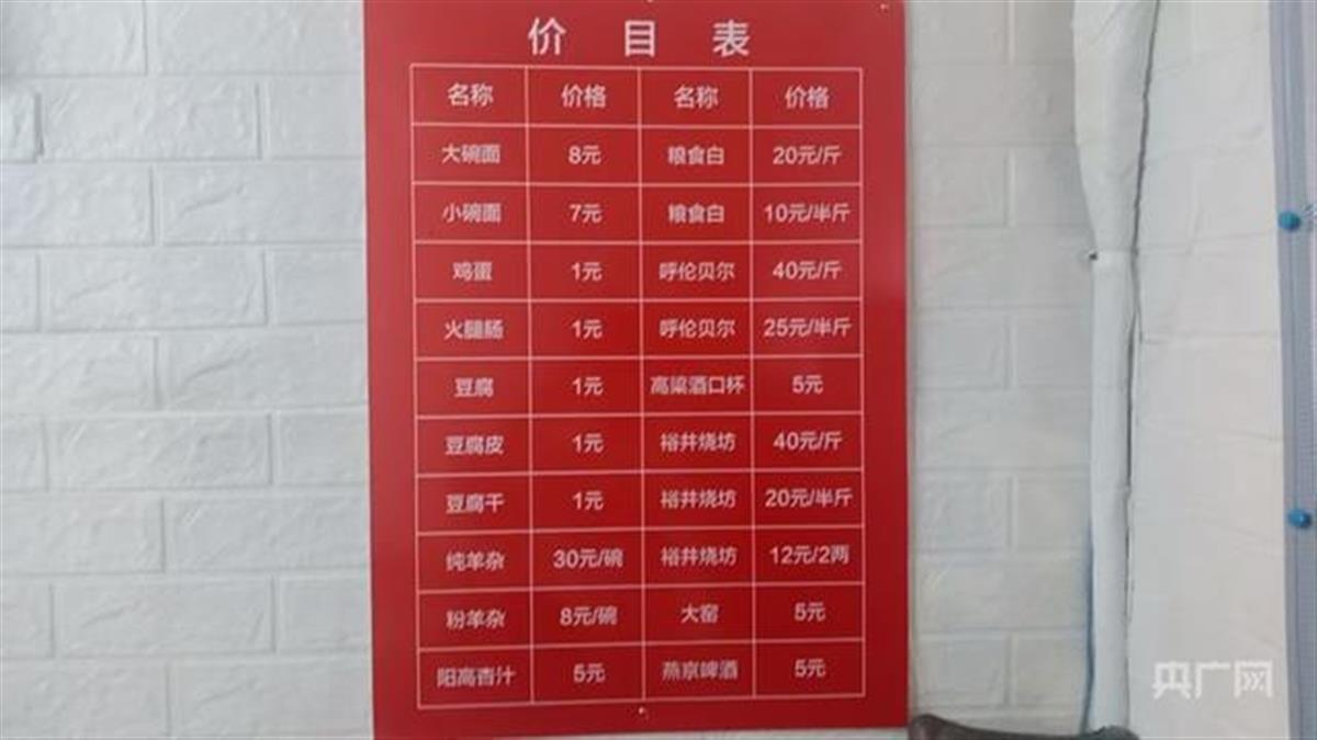 重新营业后面馆内的价目表(央广网发 柴耀明 摄)