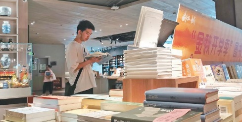 9月1日,在曲江书城“金秋开学季”图书推荐专台,读者翻阅《西游记》。