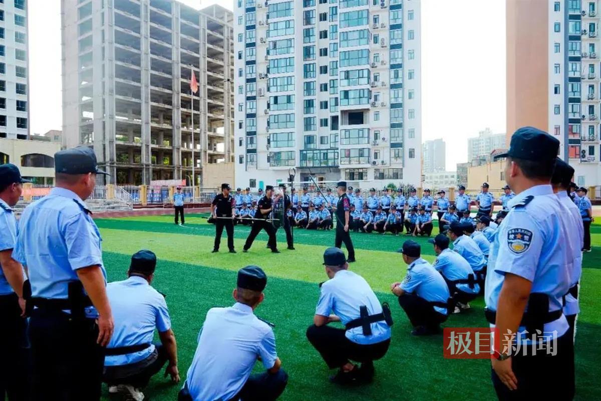 8月22日,武汉市公安局黄陂区分局围绕防暴装备的使用技巧、安全站位、沟通技巧、强制带离等方面,组织开展校园安保人员技能培训。