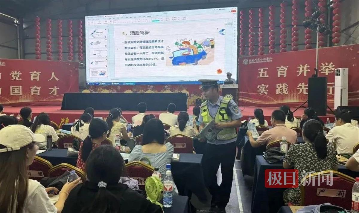 8月24日,赤壁市公安局交警大队民警为200余名中小学教师送上“交通安全第一课”。通过播放警示片、以案说法等形式向教师们展示了各类交通违法行为的危害,并开展交通法规常识、安全事故防御性驾驶等方面培训。