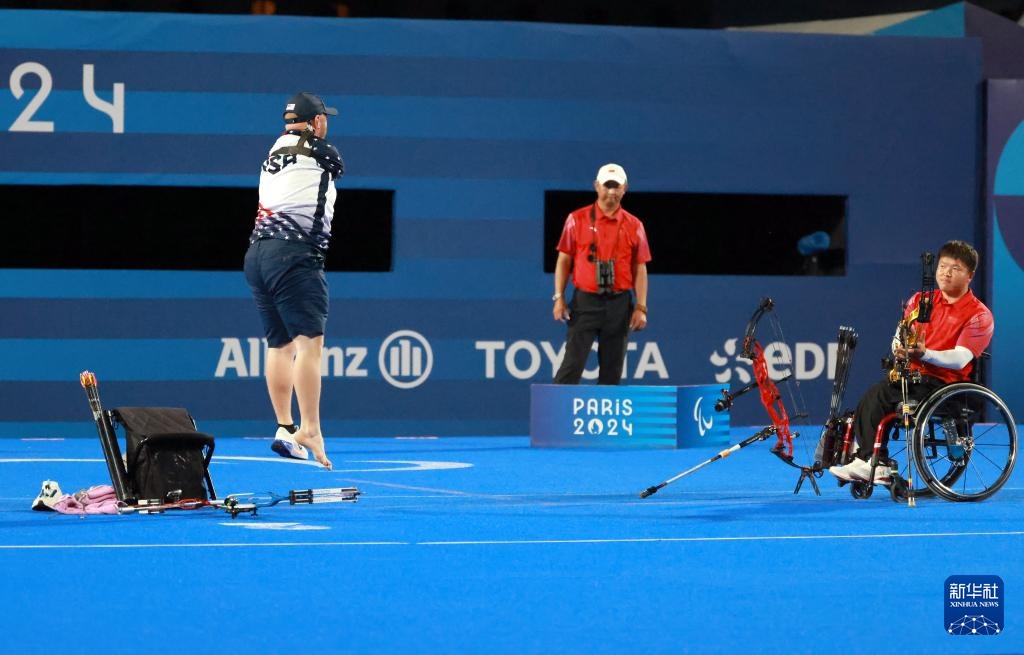 当日,巴黎残奥会射箭男子个人复合弓公开级金牌争夺赛在巴黎荣军院举行。来自美国的无臂弓箭手、41岁的马特·斯塔茨曼第四次在残奥会赛场上向冠军发起冲击。最终,他战胜中国选手艾新亮,首次在残奥会上获得该项目金牌。