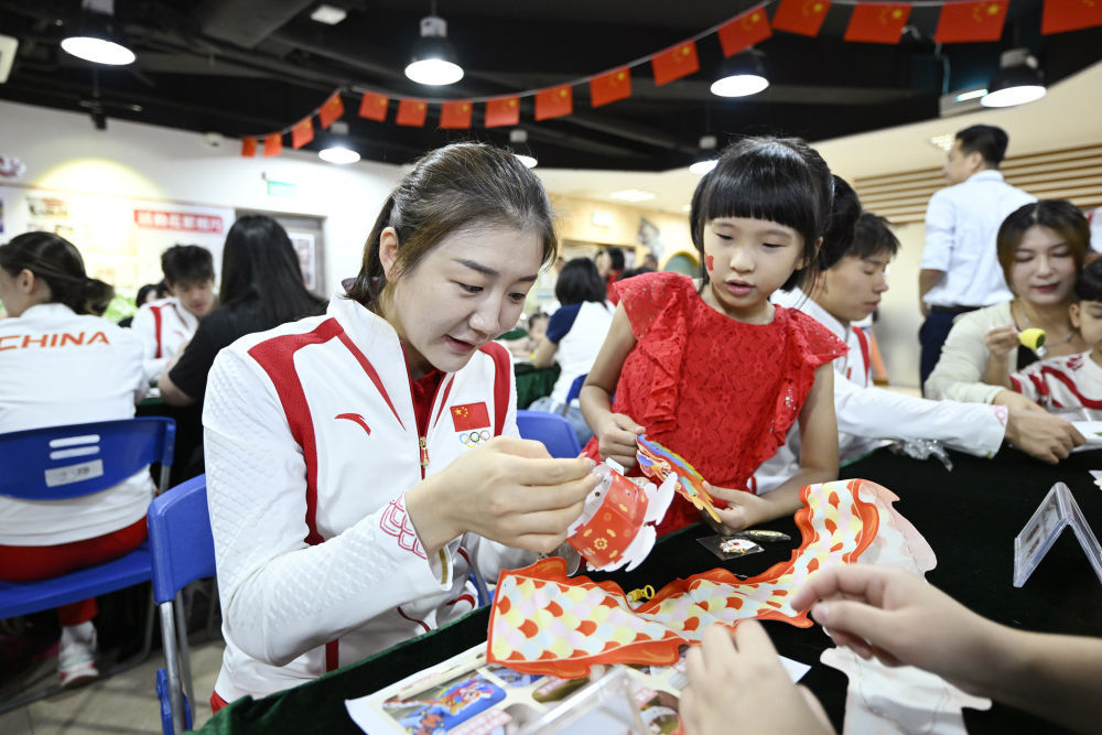 在妇联乐满家庭服务中心,跳水运动员全红婵、陈芋汐,射击运动员盛李豪等纷纷“跨界”拿起乒乓球拍,与澳门市民切磋球艺。服务中心里一时笑声满堂,奥运冠军和居民的距离从巴黎与澳门之远缩小到一个球桌之近。