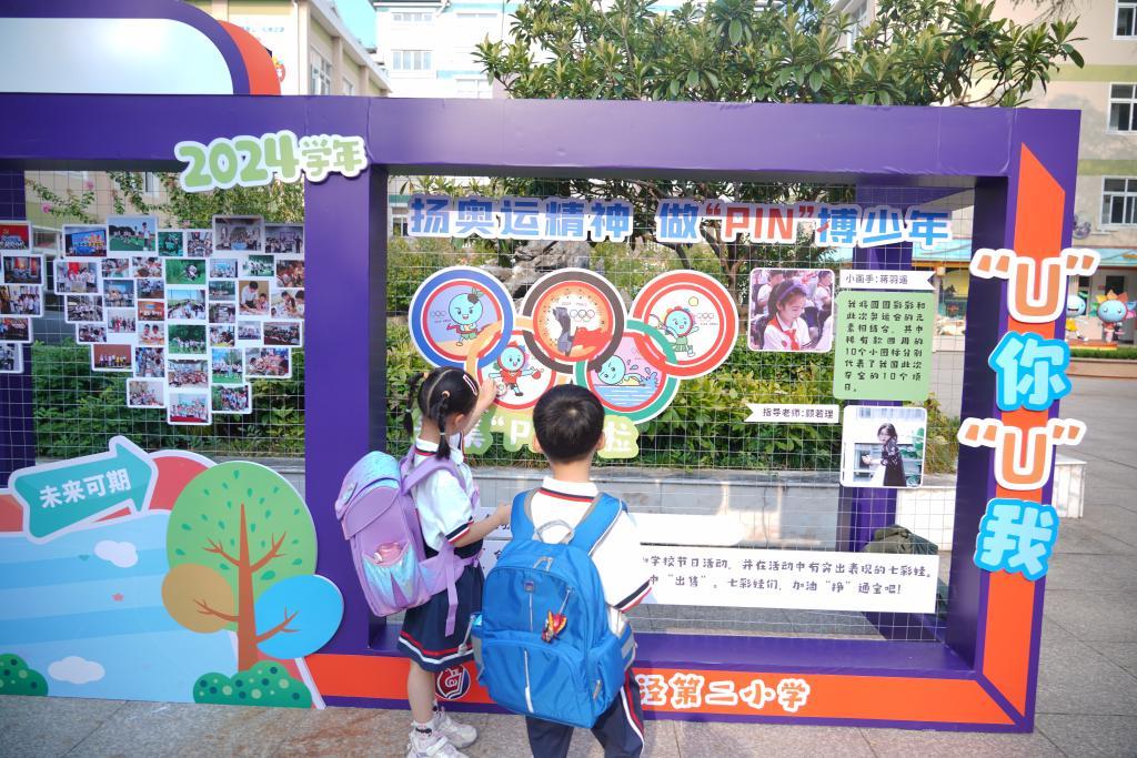 “这是我设计的奥运‘pin’,同学你快来看看。”在上海市金山区朱泾第二小学,学生蒋雨遥设计的一枚枚“圆圆彩彩X奥运”联名“pin”徽章,在校园最醒目的位置展示着。