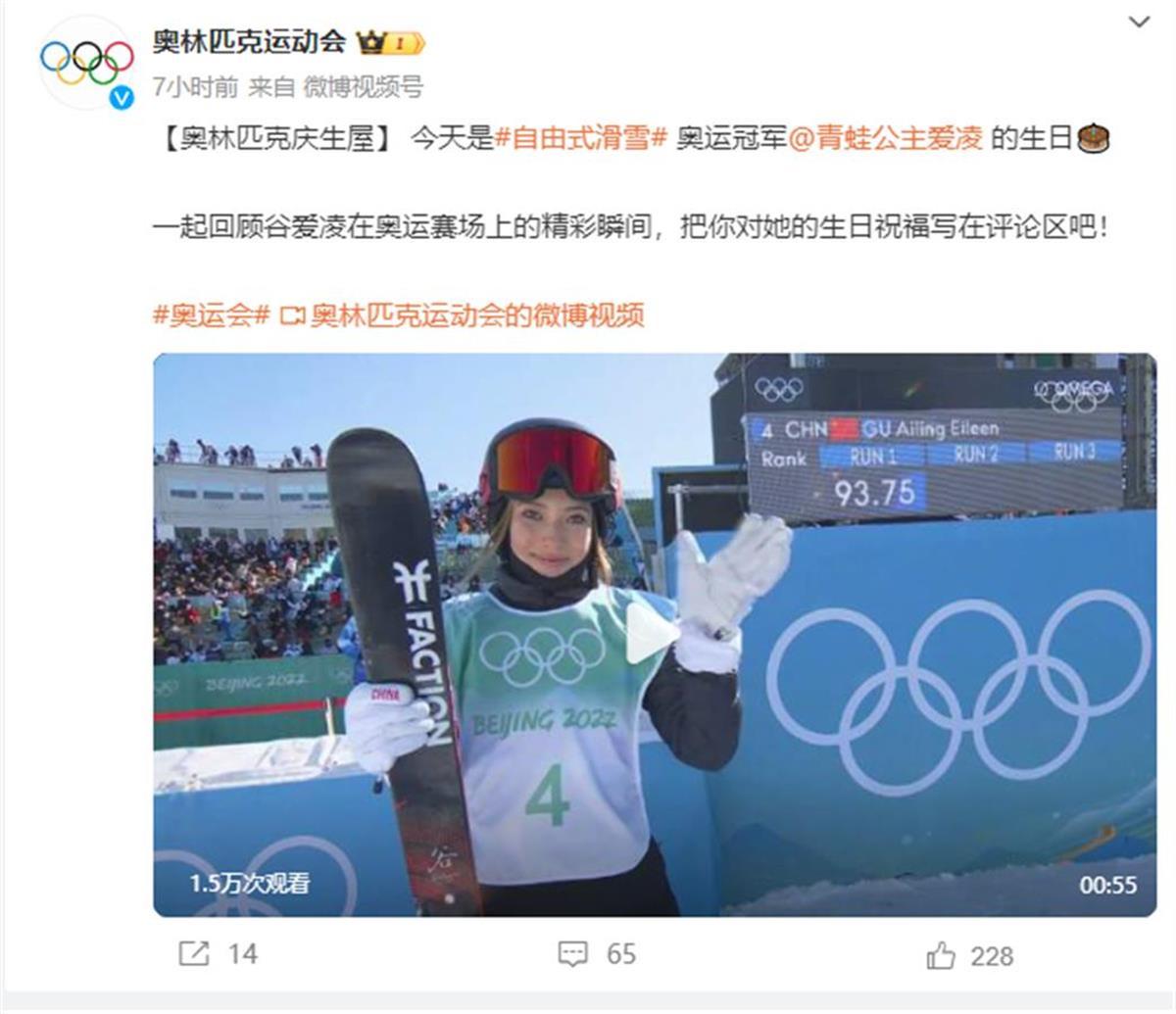 同日,国际奥委会官方微博发文,祝谷爱凌生日快乐,并配以北京冬奥会时的比赛画面。评论区的网友也纷纷祝福她生日快乐。