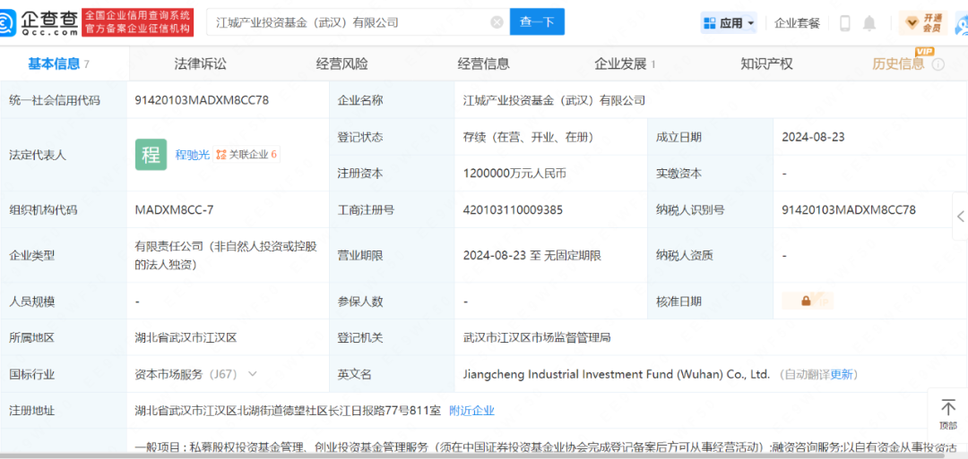 日前,武汉产业基金投资平台——江城产业投资基金(武汉)有限公司正式成立,注册资本120亿元,由武汉金融控股(集团)有限公司全资持股,后者由武汉市国资委实际控制。