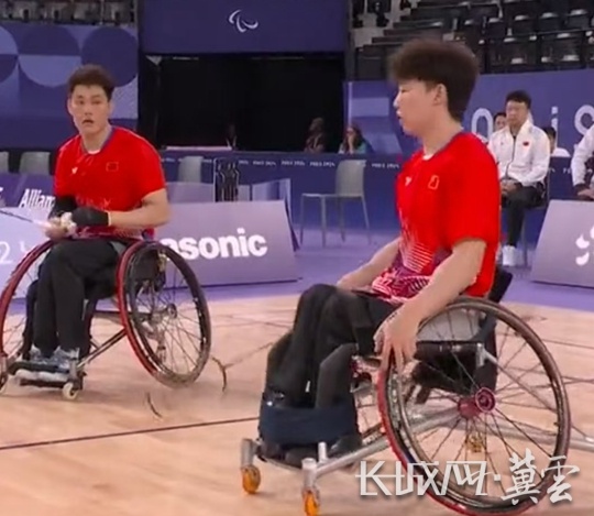 巴黎残奥会羽毛球男子双打WH1-WH2决赛现场。