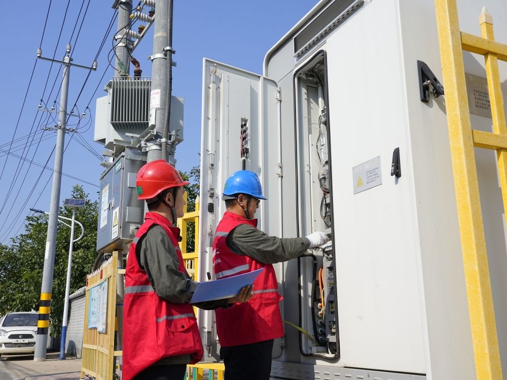 图为电力工人检查农村储能装置(新华社记者王昆摄)