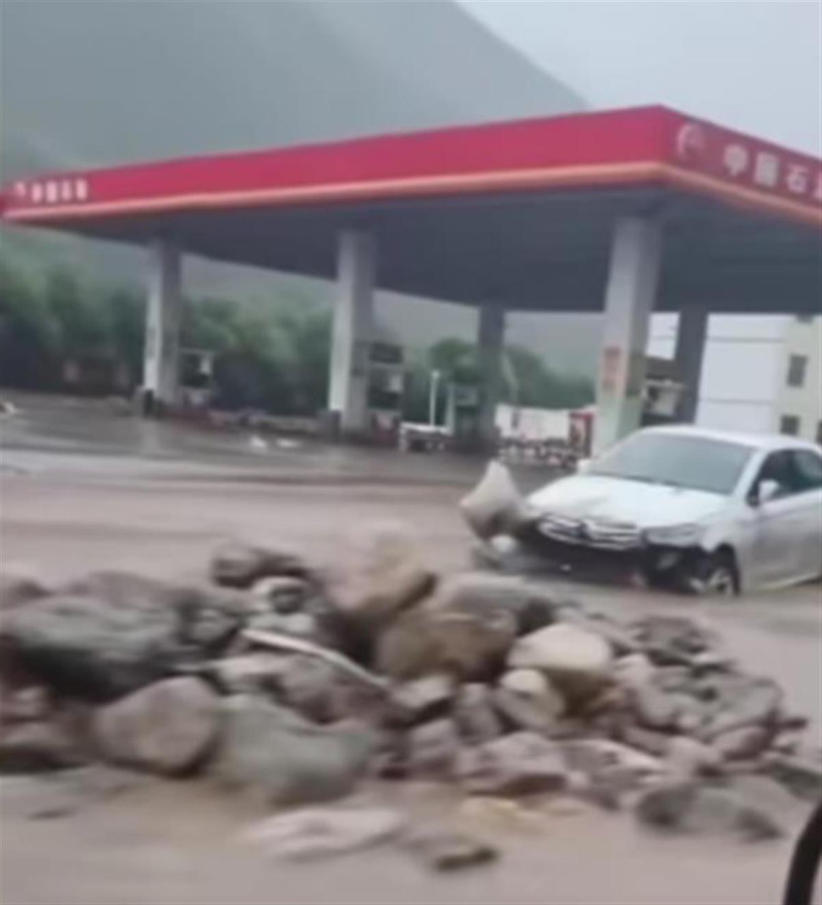 事发地附近一商户告诉记者,3日晚上开始下大暴雨,暴雨带着泥沙涌进了附近的小卖部,今天附近商户都没有开门营业。今早,他们发现附近路面出现很多被暴雨冲下来的石头,有停在路上的车被石头砸了,目前交警已将该路段封闭起来。