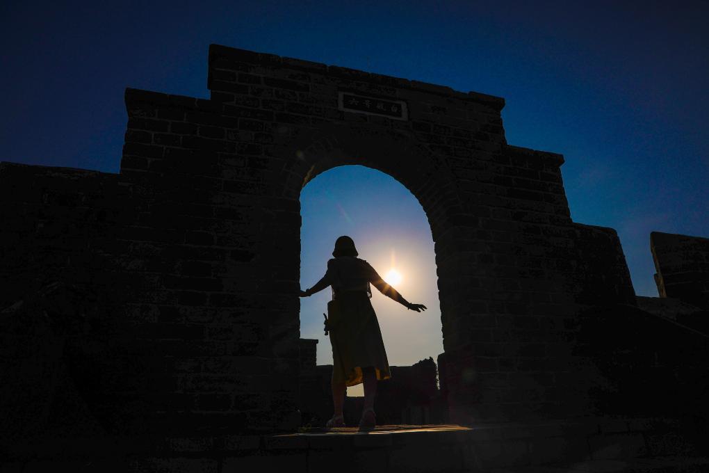 9月3日,游客在虎山长城游览。