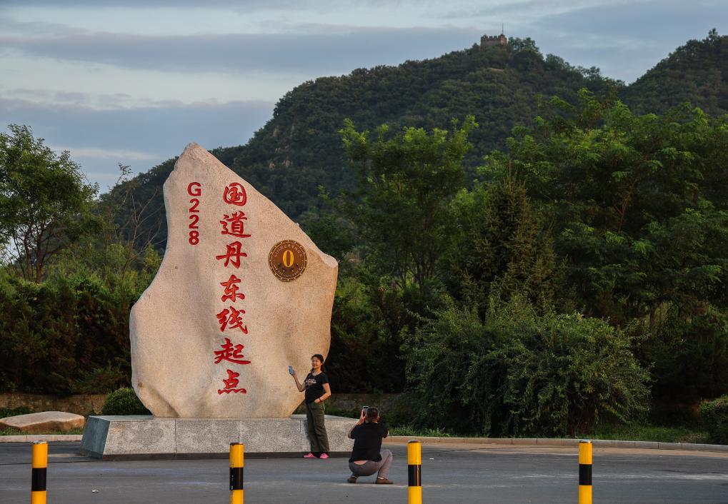 9月3日,游客在G228国道0公里纪念碑拍照留念。