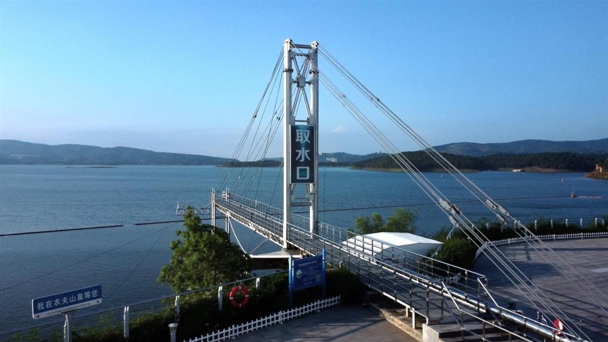 农夫山泉屹立在水边,像一颗生态明珠,安静但是耀眼。丹江口大坝左岸上游约500米处,农夫山泉取水口静静地立在水中。8月8日,记者乘船停泊取水口,波澜不惊的水面,潜藏着深层水的汩汩清流。据介绍,该取水口采用浮船取水方式,取出水库的深层水,然后通过管道直接把深层水输送至水处理车间。