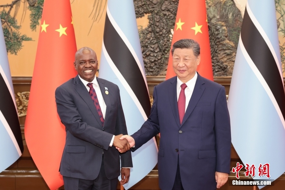 9月5日中午,中国国家主席习近平在北京人民大会堂会见来华出席中非合作论坛北京峰会的博茨瓦纳总统马西西。中新社记者 盛佳鹏 摄