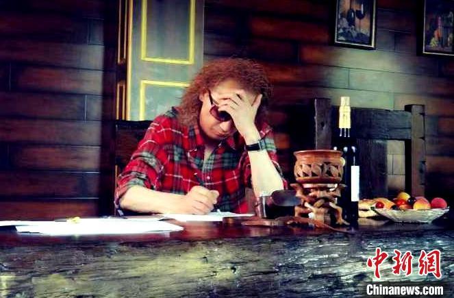 《苹果香》演唱者狼戈伏案创作。受访者供图