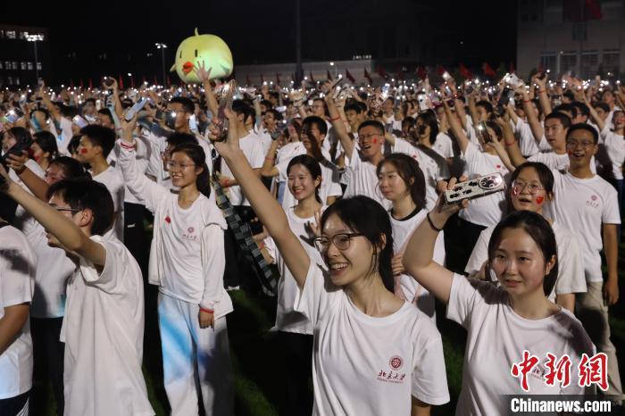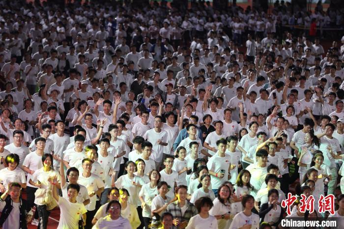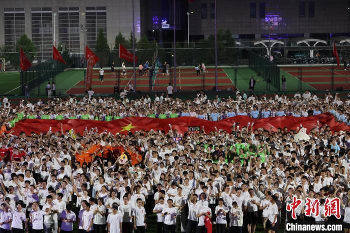 图为新生们跑步后唱校歌。中新社记者 蒋启明 摄