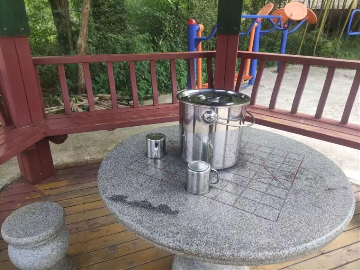 桂梅亭建好后,徐桂梅老人除了每天烧茶送茶,还承担了亭子和周边广场的卫生。亭子里的石桌、扶手、座位每天都要擦一擦,广场两天扫一次。