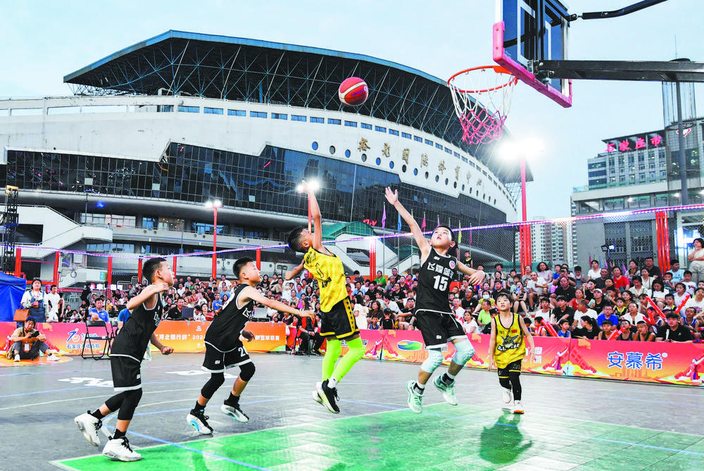 图为今年暑期,石家庄市全民三人制篮球联赛小篮球组比赛现场。