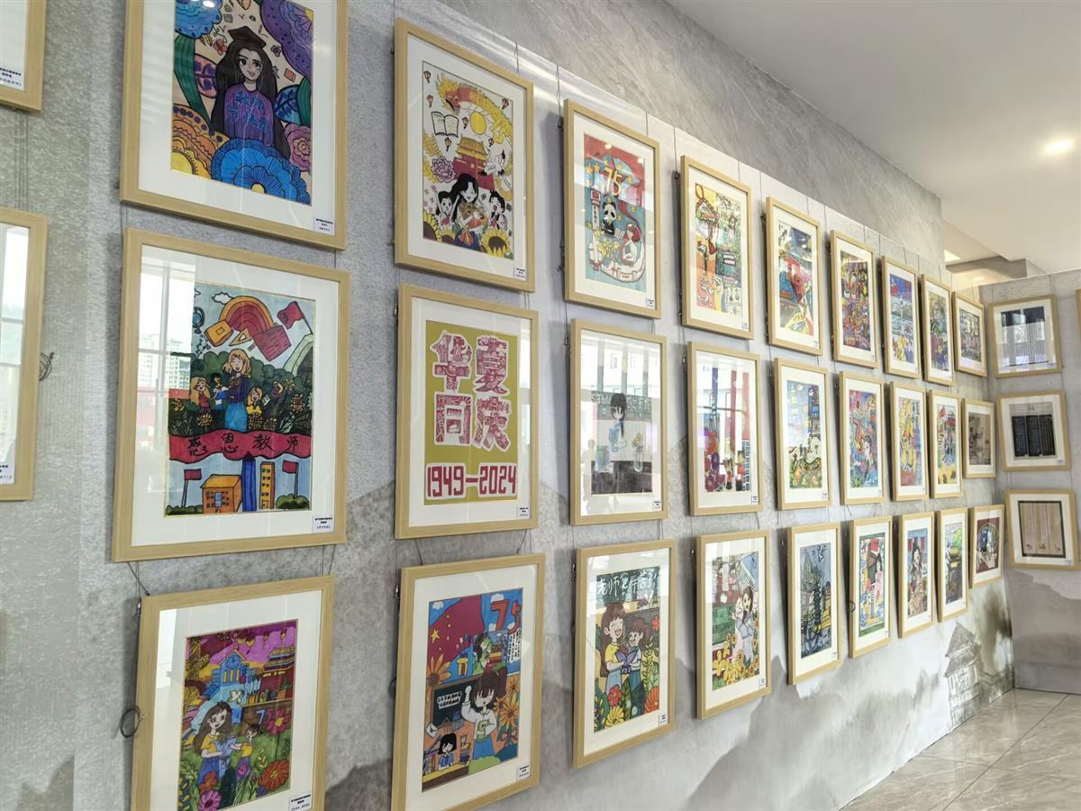 在香城大剧院前厅,各式各样的科学教育成果展、非遗展、书画展吸引了大家的目光。