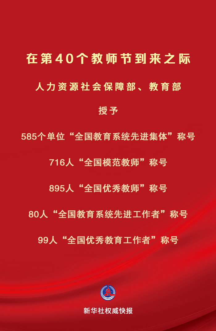 新华社北京9月8日电 题:第40个教师节:585个单位、1790人受到表彰 大国良师无上光荣