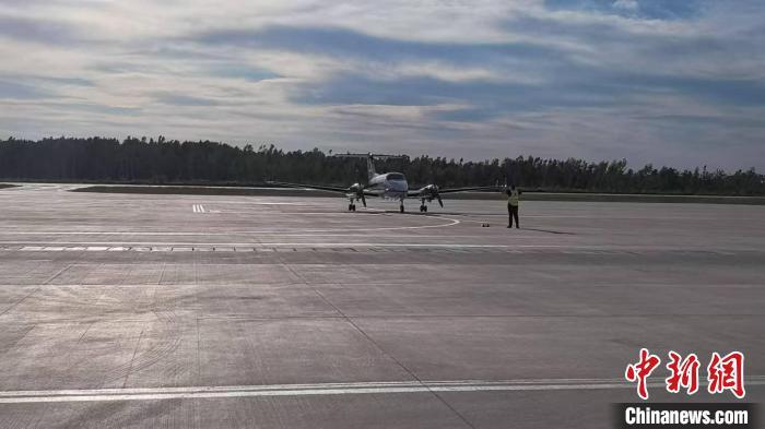 飞机飞抵呼玛鹿鼎山机场。 姜辉 摄