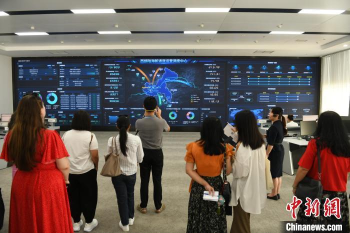 图为中外媒体代表在西部陆海新通道运营调度中心参访。中新网记者周毅摄