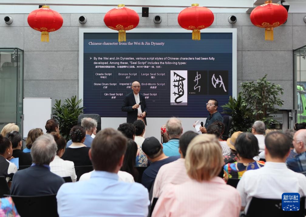 这是9月8日在比利时布鲁塞尔拍摄的“汉字的魅力”讲座现场。新华社记者 潘革平 摄