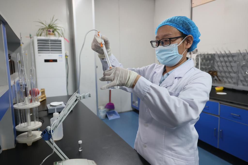 新华社石家庄9月10日电(记者 王昆)在河北省衡水市冀州区的河北昌昊生物科技有限公司研发质检部,生物工程技术人员王树丽正在对生产的食品添加剂谷氨酸进行生物工程光学分析,通过原子吸收光谱仪等精密仪器检测产品重金属及微量元素含量,严格把控产品质量。