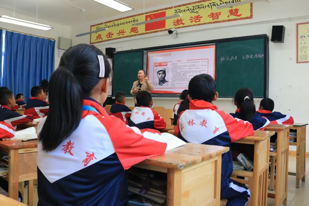 9月3日,林芝市米林市小学副校长曾洁为学生上课。新华社记者沈晓朦 摄