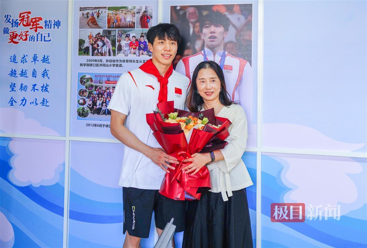 “在井冈山小学就读的日子,张老师像一道温暖的光,她不仅关心我的学习,也关心我的训练。”9月10日,在巴黎奥运会上夺得男子4×100米混合泳接力金牌的湖北籍运动员孙佳俊,现身武汉市硚口区教师节活动,向自己的小学班主任张兆君和游泳启蒙教练刘华斌,送上暖心拥抱。当日,他重回母校,为师生送上具备特殊意义的教师节礼物。