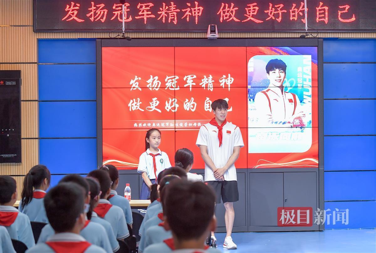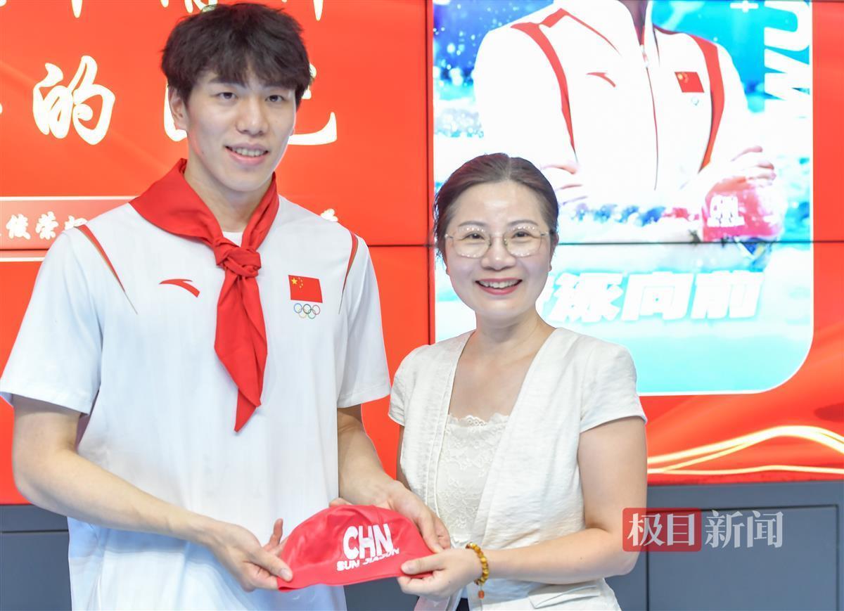 “老师们辛苦了,祝所有老师教师节快乐!”当天恰逢教师节,孙佳俊特意把承载了巴黎奥运记忆的泳帽,送给学校,以此激励学弟学妹们勇敢拼搏,做最好的自己,也把冠军精神的种子播种在了学生的心田。
