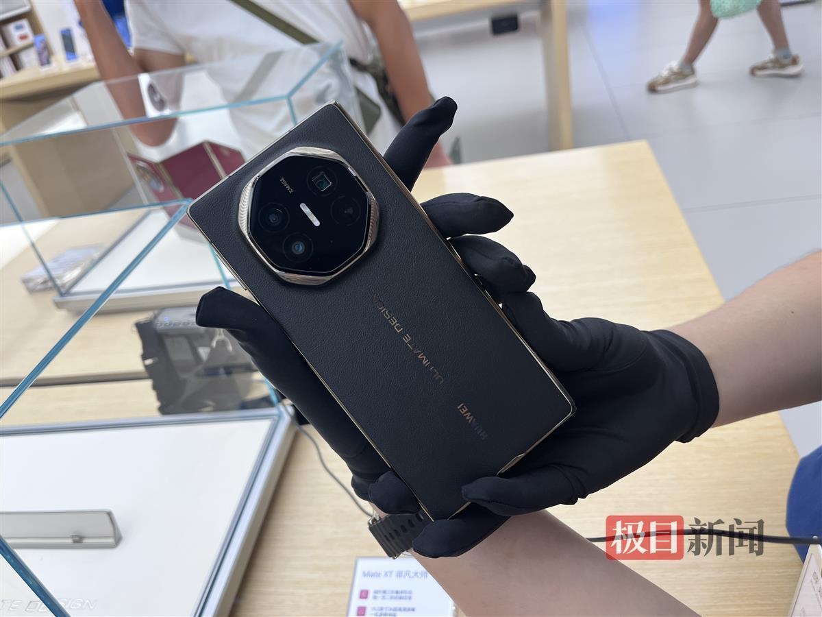 9月10日晚,极目新闻记者在北京大兴区一家华为授权体验店看到,两部Mate XT三折叠屏手机被放置在展示柜里,顾客暂时无法上手体验,只能由店员给他们作展示。一位店员介绍,店里目前只有两部该款手机,只作为展示,不能体验,“手机在屏幕、摄像头等方面均有所创新,可以满足多种需求。”该店员说。