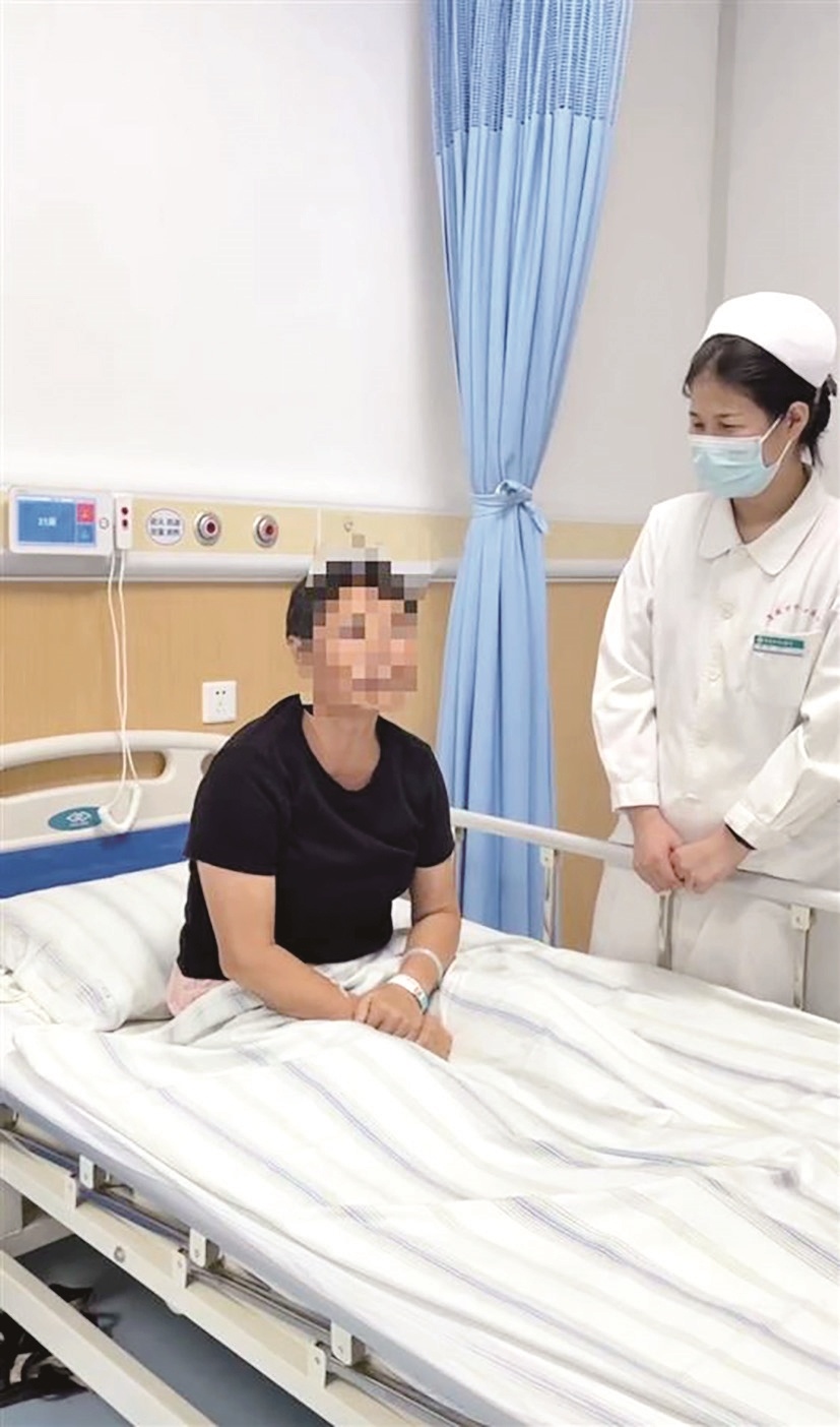 谢婆婆对夏雪护士(右)连连道谢 通讯员供图