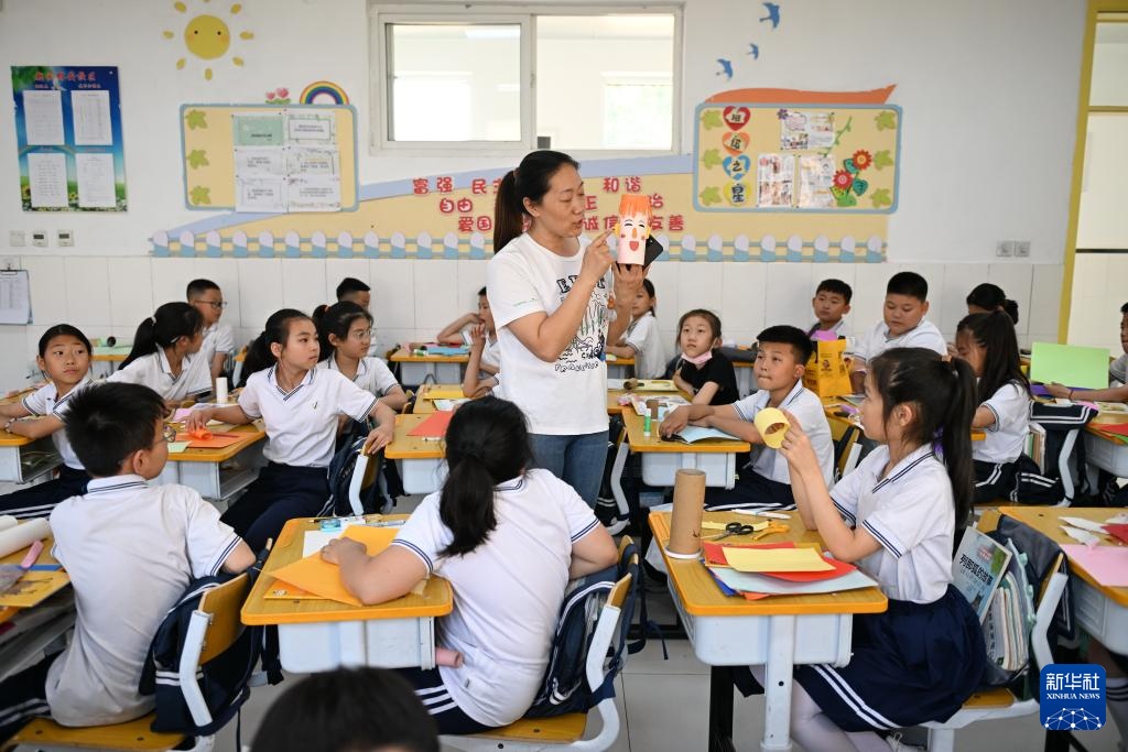 北京市朝阳区实验小学雄安校区的老师给学生上手工课。新华社记者 牟宇 摄