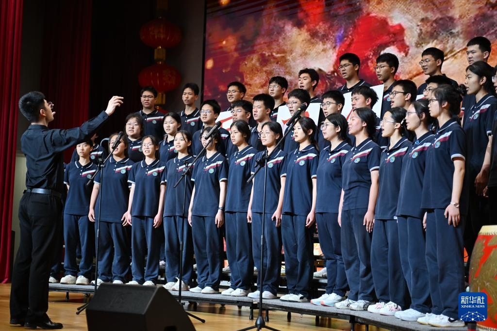 北京八十中雄安容东分校的学生在排练合唱。新华社记者 牟宇 摄