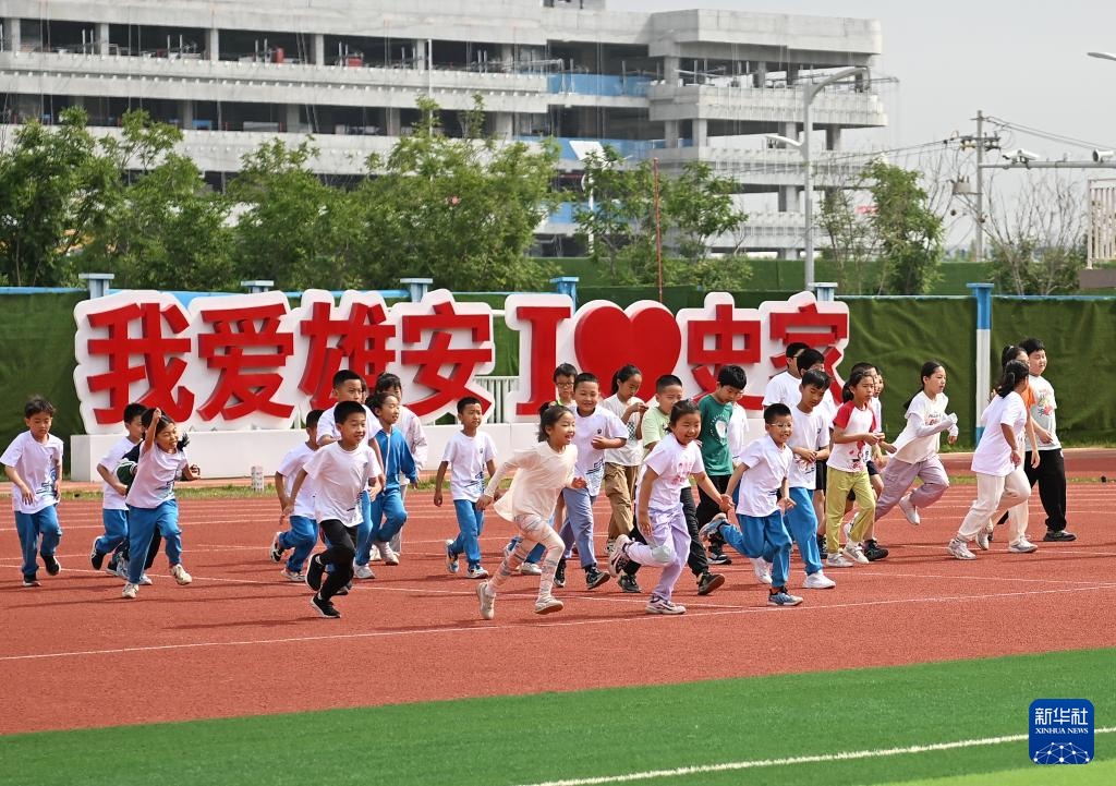 雄安史家胡同小学学生在操场上运动。新华社记者 牟宇 摄
