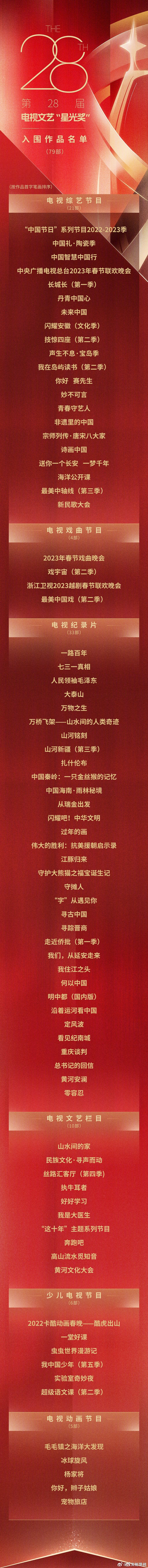 第34届中国电视剧“飞天奖”入围作品名单公布!第28届电视文艺“星光奖”入围作品名单公布!